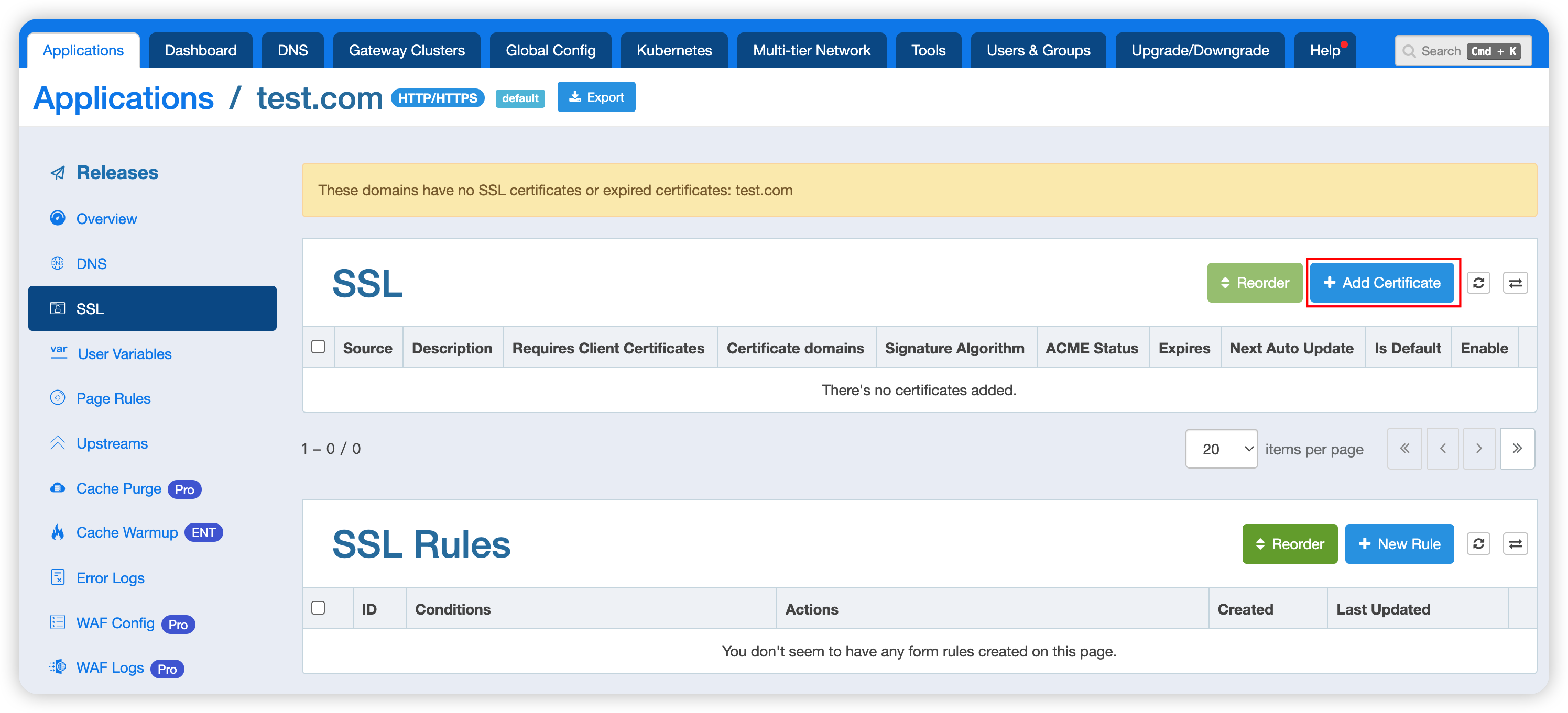 | “does not belongs to any DNS application” | 泛域名的父域名未在 OpenResty Edge 上托管为 DNS 应用。请先添加对应的 DNS 应用。 |