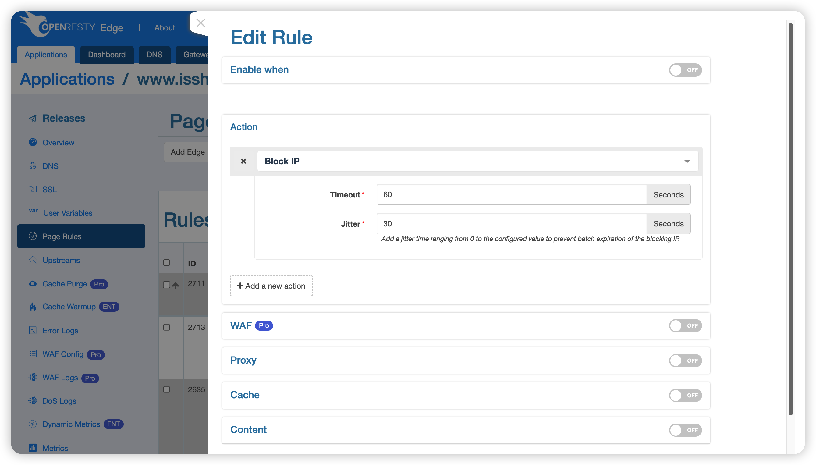 600表示封禁該來源 IP 600 秒(即 10 分鐘)。 - 抖動時間(Jitter):在過期時間的基礎上新增一個隨機的時間偏移量(單位:秒)。實際封禁時長為